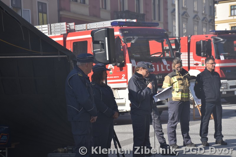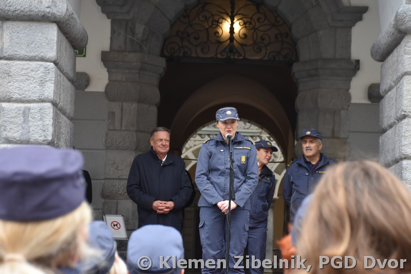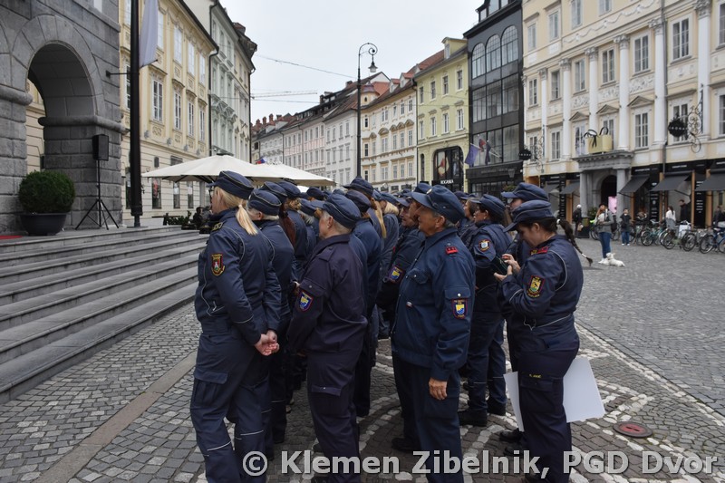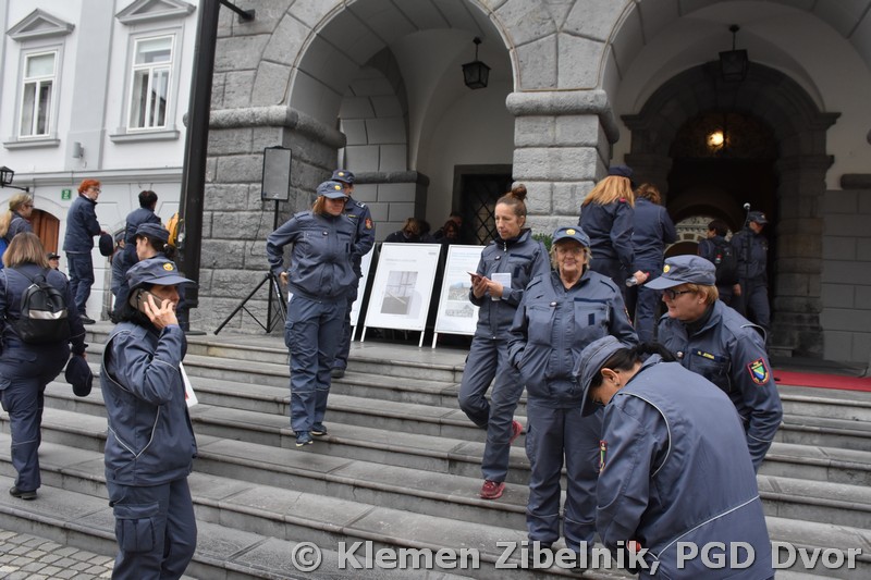 Srečanje se je nadaljevalo pri mestni hiši s postrojem gasilk in predajo raporta. Zbrane so nagovorili še predsednik Gasilske zveze regije Ljubljana Franc Bradeško, namestnica predsednika Gasilske zveze Slovenije dr. Janja Kramer Stajnko in župan Zoran Janković.